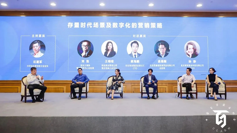 中百協(xié)場(chǎng)景創(chuàng)新分會(huì)會(huì)長(zhǎng)紅建軍主持對(duì)話,對(duì)話題目為“存量時(shí)代場(chǎng)景及數(shù)字化的營(yíng)銷策略”,藍(lán)光文商旅策劃管理中心總經(jīng)理劉凱 、華泓商業(yè)管理公司聯(lián)合創(chuàng)始人&CEO王曉暄、合生商業(yè)集團(tuán)合商云匯CTO龔海鵬、北京思康瑞體育用品有限公司總經(jīng)理高福順、北京楚梵基業(yè)科技有限公司CEO孫靜作為嘉賓參加分享。