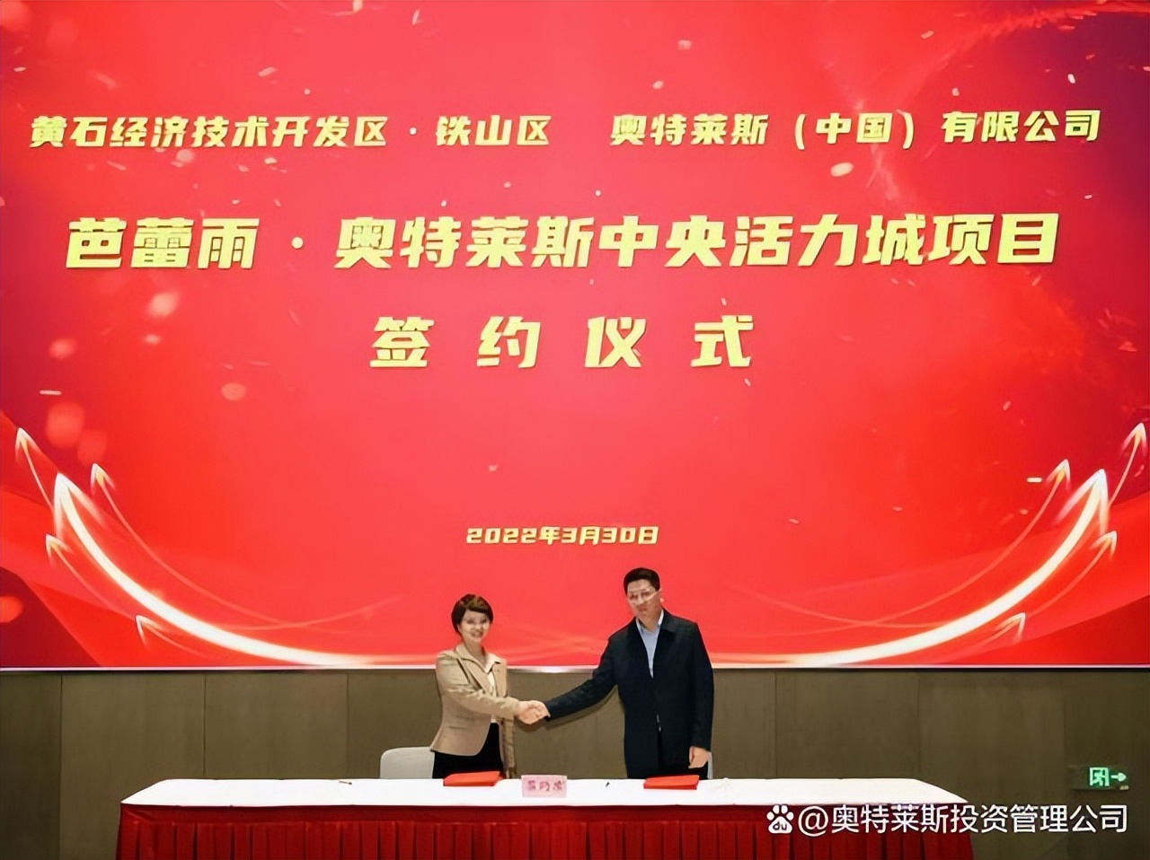 3月30日,奧特萊斯(中國)有限公司總裁拜訪黃石市政府,與黃石市吳之凌市長進(jìn)行會談,并與黃石市經(jīng)開區(qū)·鐵山區(qū)簽署“黃石芭蕾雨·奧特萊斯中央活力城項目”合作協(xié)議。黃石市政府、經(jīng)開區(qū)管委會·鐵山區(qū)政府相關(guān)部門,以及公司助理總裁李曉薩參會。