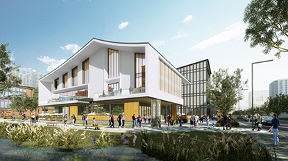 雄安奧特萊斯位于雄安·電建智匯城東區(qū)商業(yè)軸線核心位置,臨近城市發(fā)展主干道,其總建筑面積約13萬㎡,規(guī)劃經(jīng)營面積約9.6萬㎡。項目布局分為2大功能組團,4大主題分區(qū)。