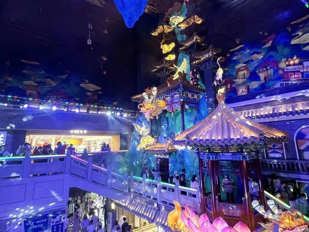 作為國內首個“沉浸式文商旅綜合體”,“秦淮·戲院里”在秦淮文化的基礎上,抽取出奇市、燈山、幻戲的典型場景意向與文娛主題,將主題景觀、演藝內容、商戶業(yè)態(tài)等有機融合在一起,努力為用戶帶來身臨其境的奇幻體驗。