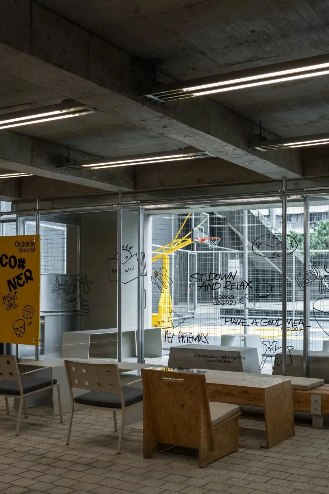 CO#NER食堂,以禁欲系冷淡風(fēng)為主旋律,設(shè)計上承襲了極致輕工業(yè)的時尚美學(xué),細膩而不失格調(diào)。其獨特的售賣模式圍繞模塊化“檔口”展開,融合POP UP快閃店概念,營造出既持續(xù)又多變的用餐氛圍,旨在為顧客解鎖無限可能的美食探索之旅。空間內(nèi),水泥原色與暖木色家具巧妙碰撞,輔以生動活潑的簡筆插畫,色彩斑斕間傳遞出溫馨舒適的放松信號,讓人在享受美食的同時,也能感受到心靈的慰藉。