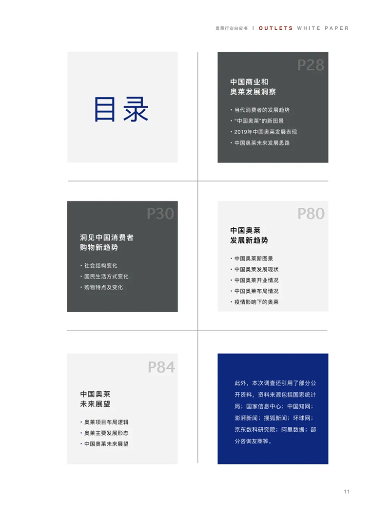 為了及時(shí)總結(jié)中國(guó)奧萊的發(fā)展?fàn)顩r和運(yùn)營(yíng)經(jīng)驗(yàn),引導(dǎo)中國(guó)奧特萊斯產(chǎn)業(yè)在后疫情時(shí)代的健康、快速發(fā)展,我們組織編寫(xiě)了這部《2020中國(guó)奧特萊斯行業(yè)白皮書(shū)》。我們基于對(duì)后疫情時(shí)代中國(guó)經(jīng)濟(jì)的內(nèi)生動(dòng)力,以及中國(guó)消費(fèi)格局、消費(fèi)趨勢(shì)新變化的深?分析,并通過(guò)線上問(wèn)卷調(diào)查與線下深度訪談相結(jié)合的方式,客觀分析了中國(guó)奧特萊斯的發(fā)展表現(xiàn),綜合闡述了中國(guó)奧特萊斯的未來(lái)發(fā)展思路。