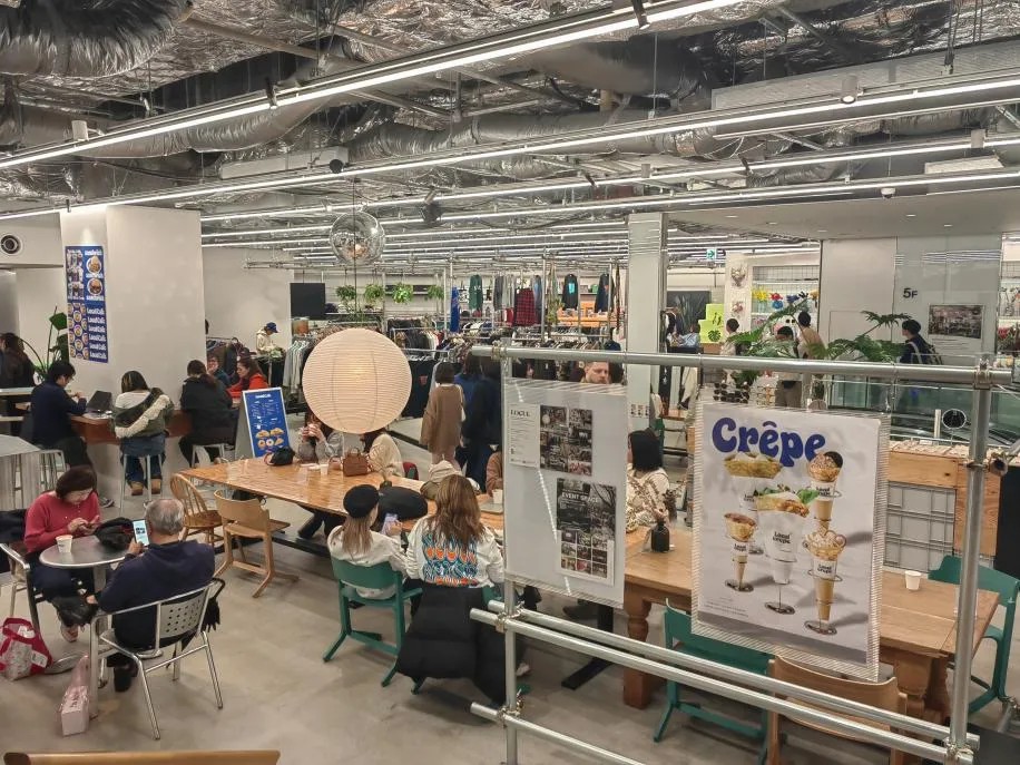 在東京的一座Tokyu Plaza中,就見到其舍棄半層經(jīng)營面積,打造出公共休閑空間。當(dāng)然,所謂“舍棄”也并非完全屏蔽零售商品售賣,只是有取舍地將更能豐富消費(fèi)者游逛體驗(yàn)的特定零售品類包羅其中。這些商品或品牌的陳列更像是美陳道具,沒有出跳的展柜與收銀臺,總能讓進(jìn)場顧客在不經(jīng)意間隨手拿起挑選。