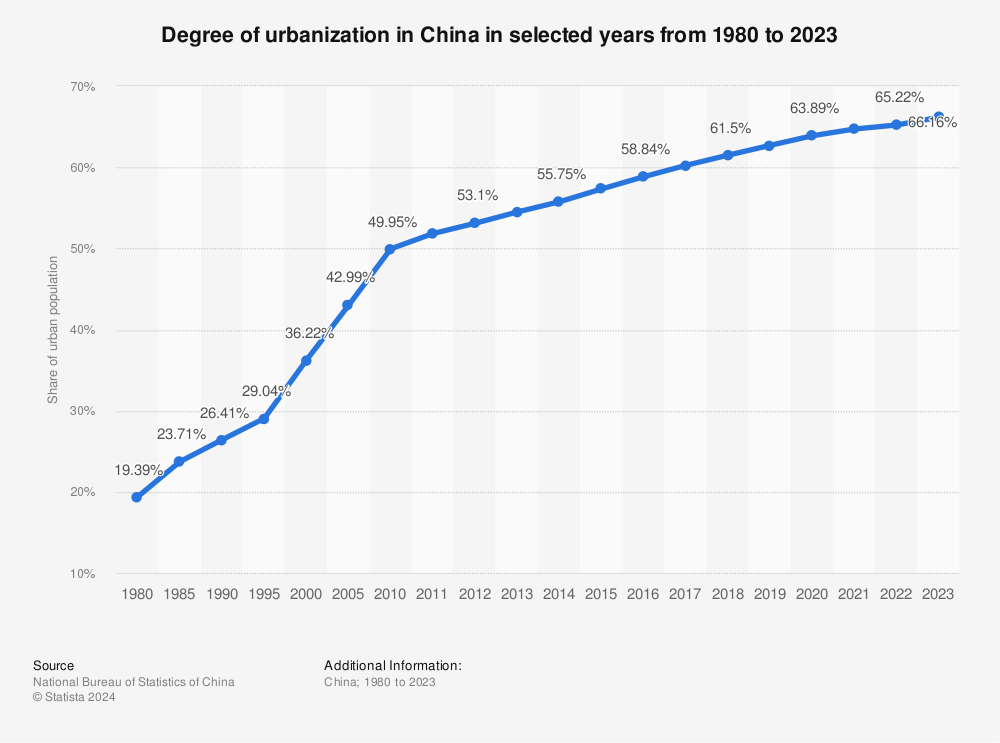 報(bào)告中顯示,2023年末,我國城鎮(zhèn)常住人口已經(jīng)達(dá)到了9.3億,城鎮(zhèn)化率66.16%,即,每三個(gè)中國人中,有兩個(gè)生活在城市里。此外,我國地級(jí)以上城市常住人口達(dá)到6.7億人,常住人口超過500萬的城市有29個(gè)。