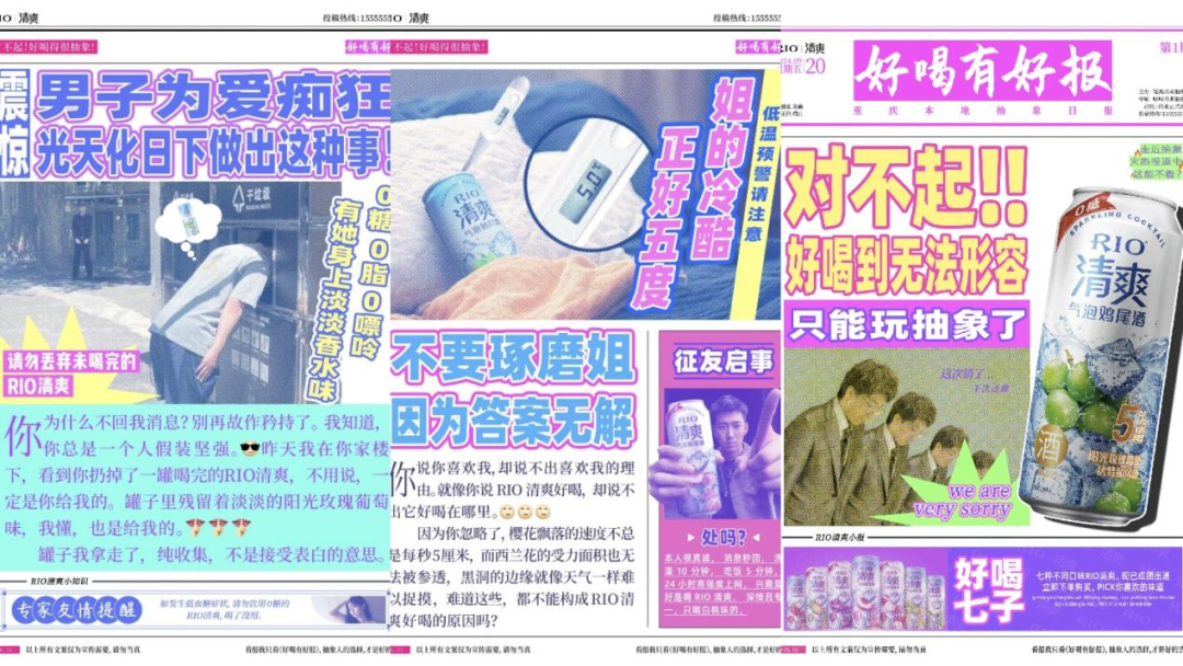 RIO雞尾酒通過(guò)這一創(chuàng)意,不僅成功吸引了消費(fèi)者的目光,更在無(wú)形中傳遞了品牌理念,讓人們?cè)诿β档穆殘?chǎng)生活中找到了一絲慰藉與放松。這一波操作,無(wú)疑再次證明了RIO在市場(chǎng)營(yíng)銷上的獨(dú)特眼光與創(chuàng)新能力。