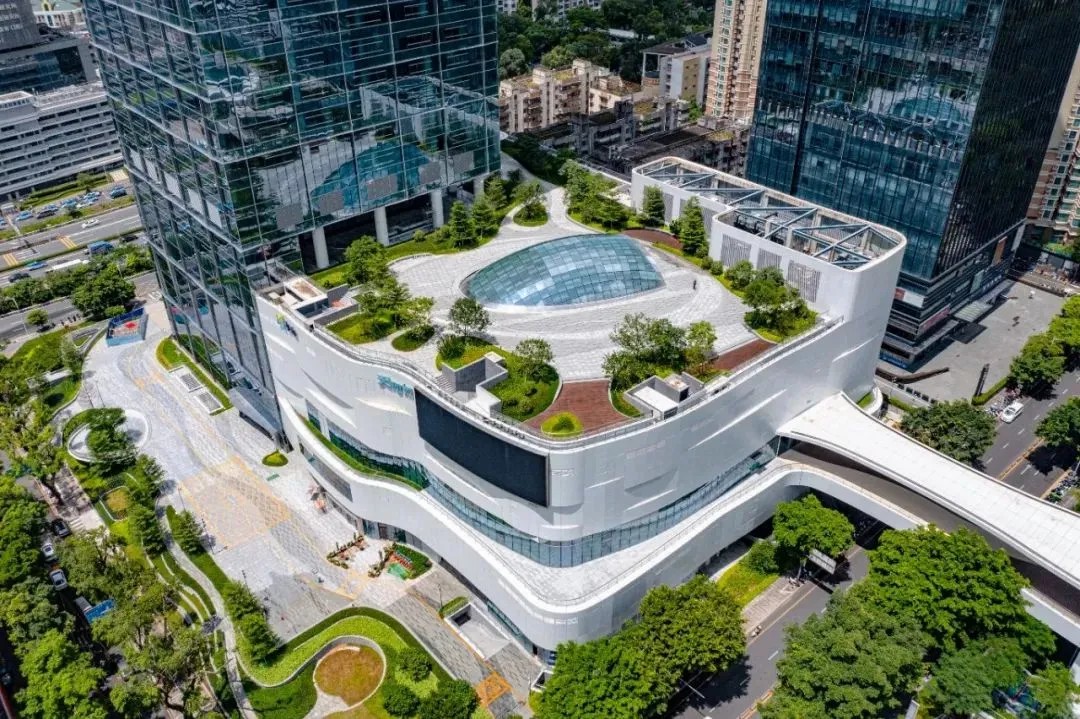 此外,深圳天河城的商業(yè)區(qū)域與3萬平方米的屋頂花園共享,將生態(tài)和綠色空間巧妙地融入購物中心的設(shè)計之中。為了確保商業(yè)空間與外部自然環(huán)境的無縫對接,深圳天河城特別設(shè)計了空中步廊,將項目與圍嶺山公園連接起來,實現(xiàn)了從屋頂花園到自然公園的流暢過渡,為消費(fèi)者提供了一個連續(xù)的游逛體驗。