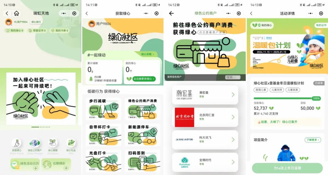 再比如,上海新天地開(kāi)發(fā)上線了消費(fèi)者“綠心”會(huì)員碳賬戶,在線下結(jié)合綠色餐廳大賞活動(dòng),推廣有機(jī)低碳的餐飲經(jīng)營(yíng)。“綠心社區(qū)”的上線為商業(yè)與消費(fèi)者之間搭建了一條綠色的通道,令可持續(xù)行為可積累、可觸達(dá)、可量化、可兌換,培養(yǎng)消費(fèi)者從意識(shí)、認(rèn)知到生活方式邁向綠色的轉(zhuǎn)變。