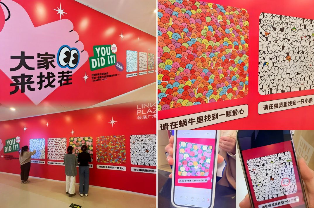 在小場景當(dāng)中,一個(gè)有意思的圍擋都能制造起購物中心與消費(fèi)者、消費(fèi)者與消費(fèi)者之間的隨機(jī)鏈接。北京中關(guān)村領(lǐng)展廣場將圍擋設(shè)計(jì)成“大家來找茬”活動(dòng),消費(fèi)者從購物中心“出其不意的小心思”里,找到了逛街帶來的驚喜。